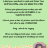 Once we dispatched your order, we’ll share your tracking id in whatsapp or email