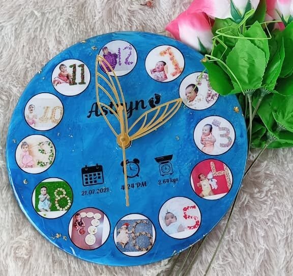 Add a touch of elegance and emotion to your space with this Resin Clock! Beautifully handcrafted, each piece is designed to preserve special memories or showcase artistic resin work — making it more than just a clock, but a timeless keepsake.